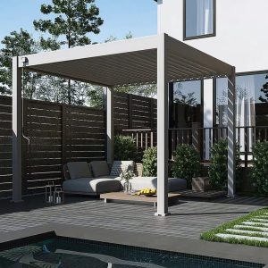 De Orion Comfort overkapping is een stijlvolle en praktische oplossing voor mensen die op zoek zijn naar een manier om hun buitenruimte te beschermen tegen de zon, regen of sneeuw. Hiermee verleng je je buitenseizoen en zit je altijd comfortabel in eigen tuin. De Orion Comfort overkapping biedt een overdekte ruimte van 9 m² waar je kan genieten van het buitenleven in alle seizoenen. Daarnaast is deze pergola perfect geschikt als overkapping voor een lounge set, zwembad of spa. De overkapping kan ook dienen als carport voor een motor of auto.