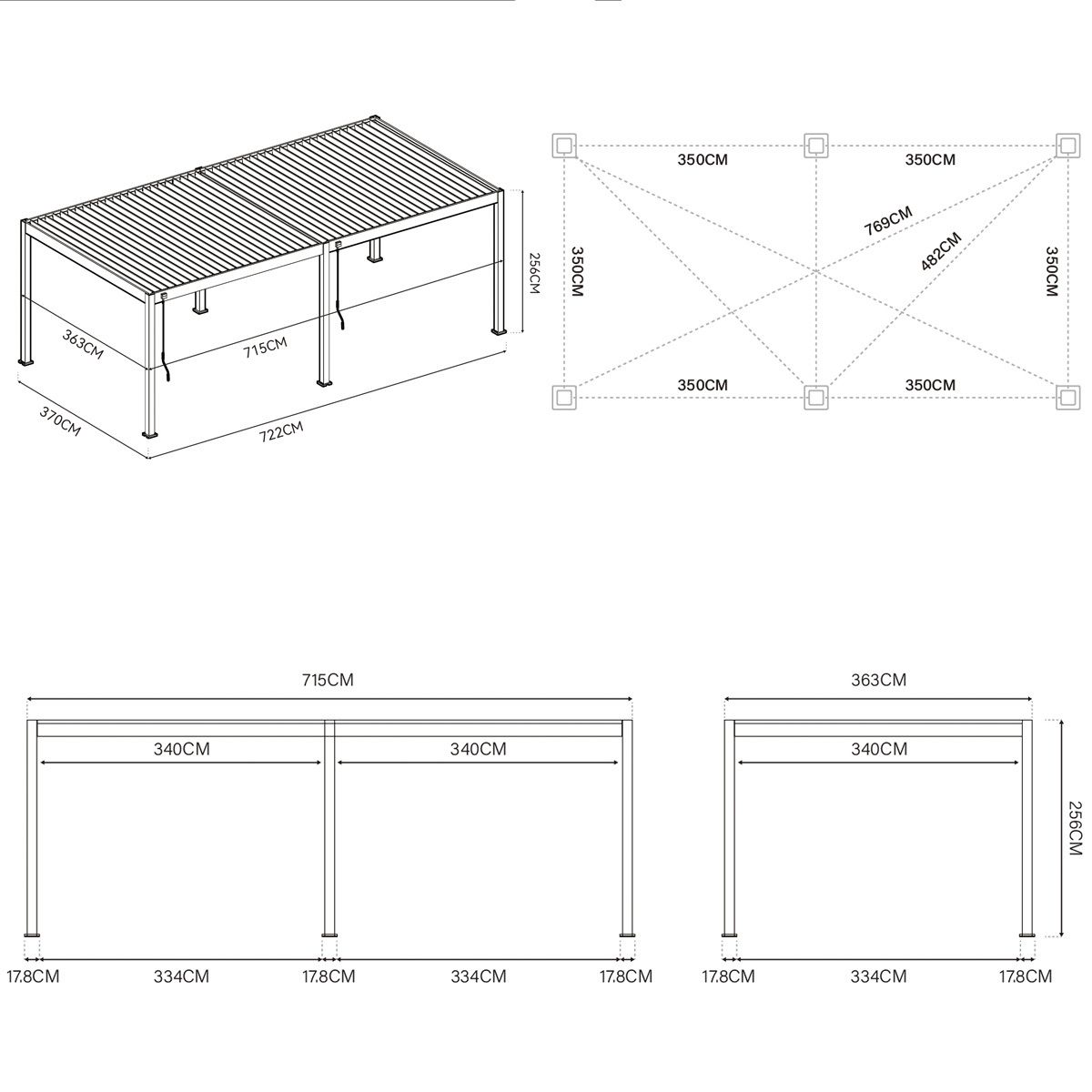 Afmetingen 360 x 720 x 255 cm